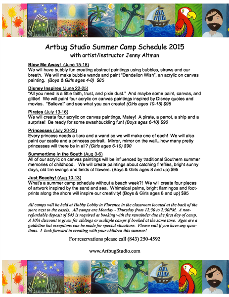 Artbug Studio Summer Camp Schedule